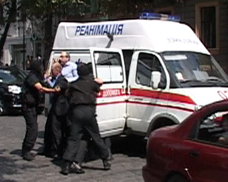 Применив грубую физическую силу, очередные «ниндзя» вытащили горсека из автомобиля медиков и затащили… в машину ДПС. Которая и увезла его в неизвестном направлении. Как выяснилось, на допрос в Киев.