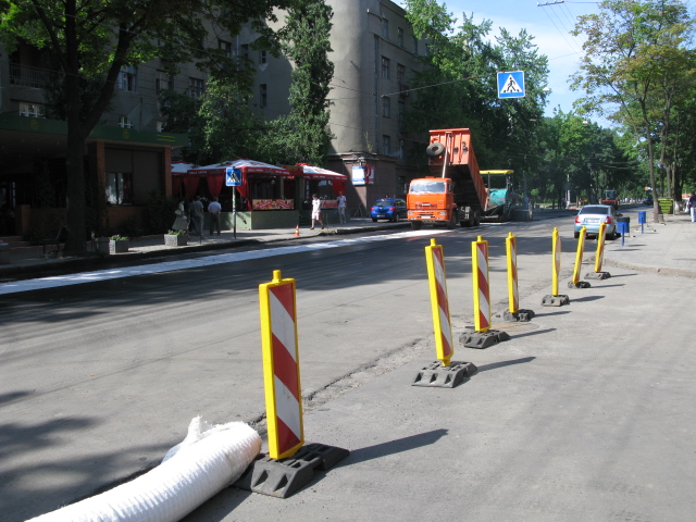 На Пушкинской укладывается асфальт самого высокого качества. Здесь решена, в частности, вечная климатическая проблема харьковских дорог, которые весной и осенью разрывает то тающая, то замерзающая вода.