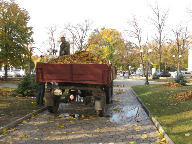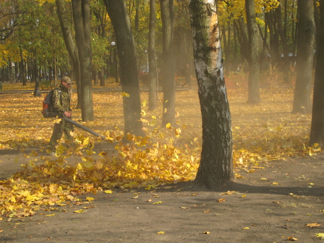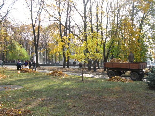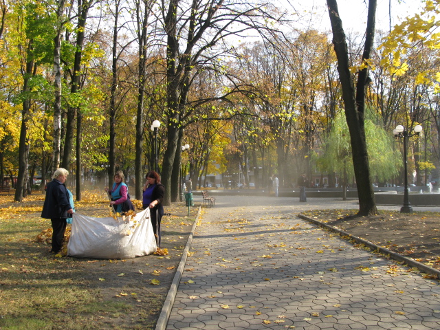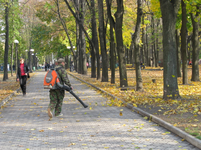 Не травить горожан и наконец-то выполнять экологические нормы – не палить опавшие листья – пытаются в Харькове. Сквер за Зеркальной струей метут… пылесосом.