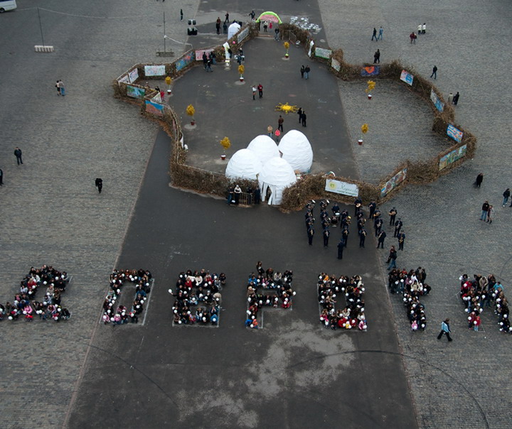 С 25 сентября на площади Свободы стартовало строительство Города Доброты. Более 500 добровольцев на портяжении 7 дней круглосуточно строили Городок Доброты, и 2 октября состоялось официальное его открытие.