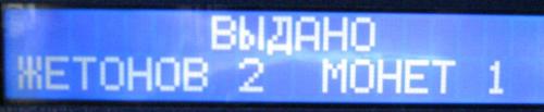На индикационном табло высвечивается сообщение о количестве выданных жетонов и монет.