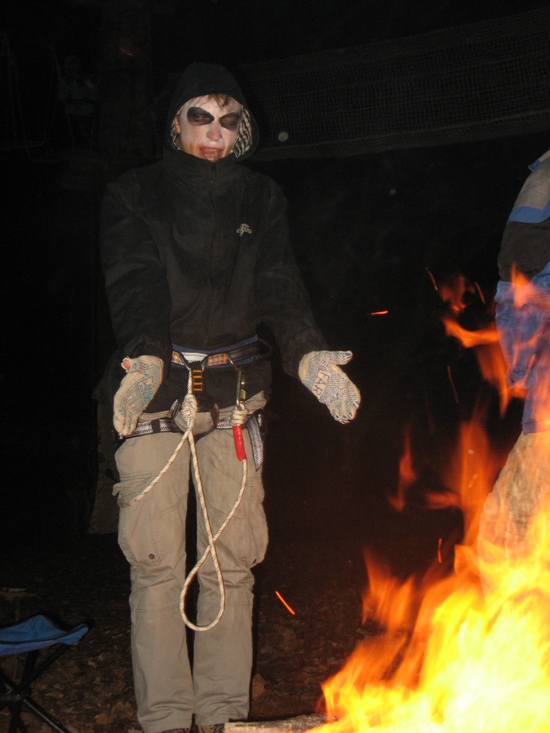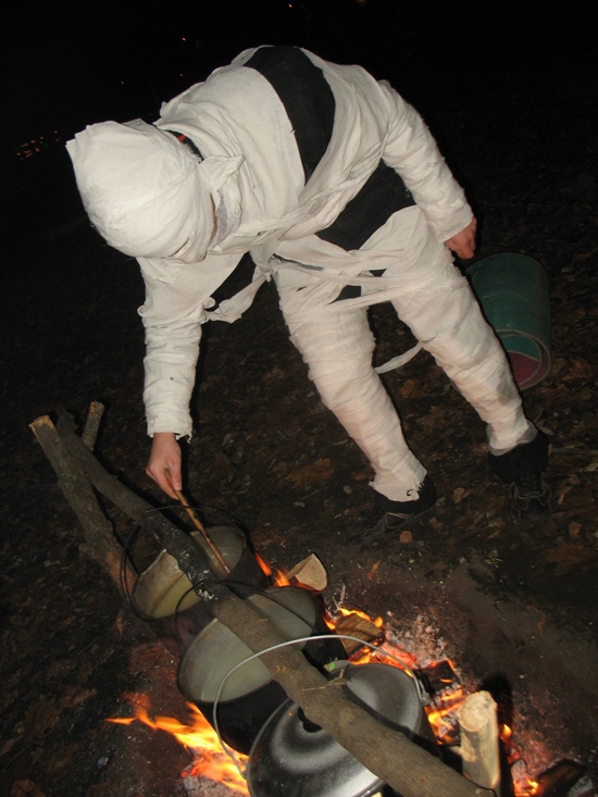 Веселились по-кельтски – согласно европейского лайф-стайла, то бишь. Конкурсы на воссоздание командного духа, нелегкие телодвижения участников на веревочных аттракционах («Стратил» один – заново начинает вся команда!», – это свирепствует верховный жрец в маске Смерти). В завершение – файер-шоу (отдельный респект товарищу с петардами-динамо, закрепленными на его пятой точке; зрелищно!), сваренный тут же на костре походный кулеш и призы смертничкам: тыквенные головы старины Джека, набитые сладостями, сувениры, а также флаеры на бесплатное посещение аттракционов.