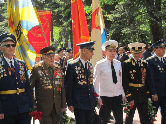 Мероприятие началось с шествия, которое возглавили Герои Советского Союза, за которыми шли ветераны боевых действий.