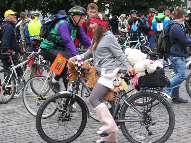 Некоторые велосипеды креативные харьковчане украшали, в том числе и мягкими игрушками.