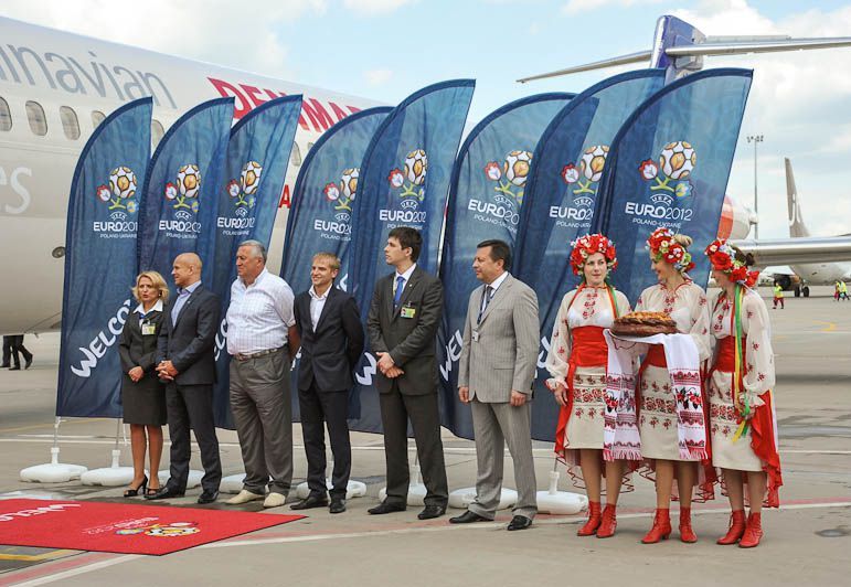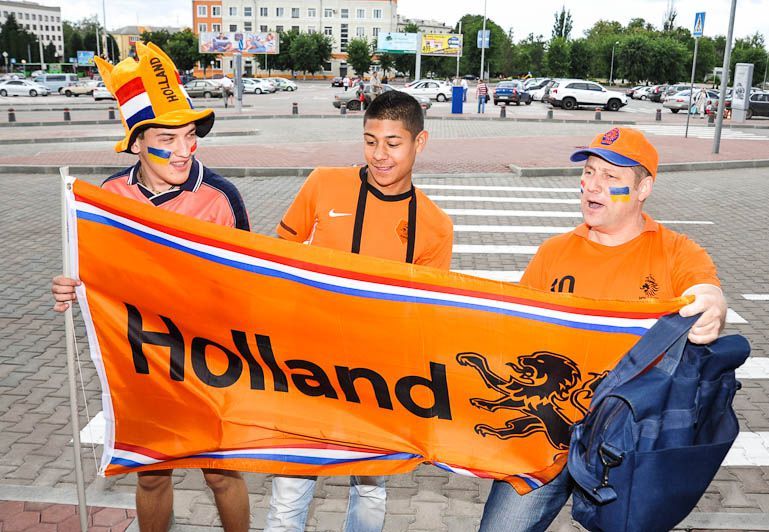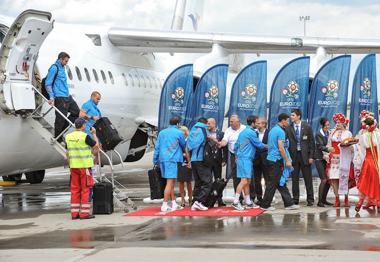 Чтобы встретить сборную, собралось около сотни болельщиков. Голландцев встречали заместитель городского головы по вопросам семьи, молодежи, спорта и подготовки Евро-2012 по футболу Александр Попов и директор Департамента по вопросам подготовки Евро-2012 по футболу Александр Нечипоренко.