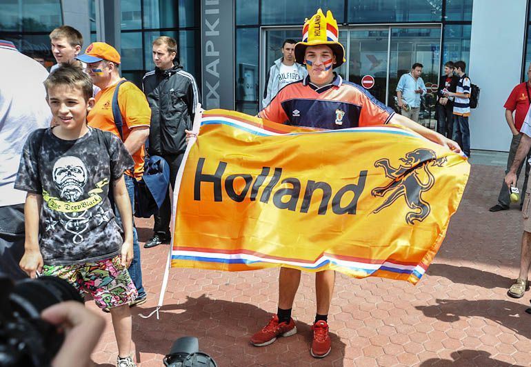 Игроки сборных Голландии и Дании по футболу сегодня, 8 июня, прибыли в Харьков.