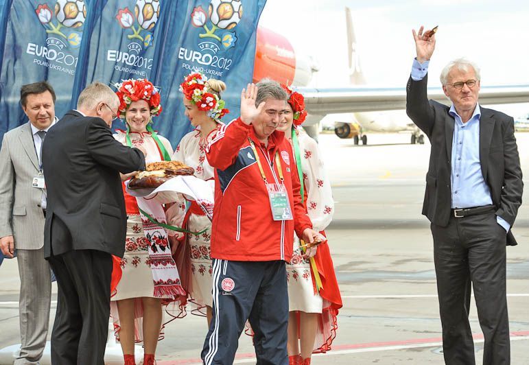 Около 13:40 в аэропорт прибыл самолет с игроками сборной Дании.