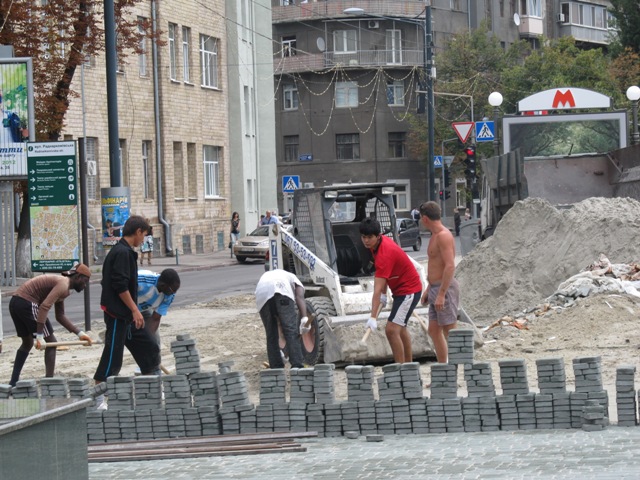 На харьковской площади Архитекторов проводятся ремонтные работы, которые будут завершены ко Дню освобождения Харькова.