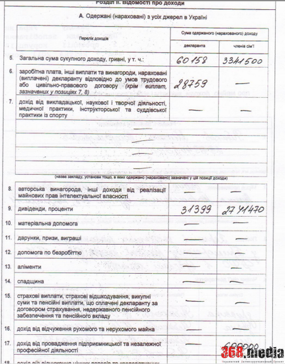 Однако, совокупный доход Натальи Рыбаковой в 2013 году составил 1,94 млн.грн. (695 тыс. от предпринимательской деятельности и 1,24 млн. грн. - доход от процентов). А уже в 2014 году ее совокупный доход увеличился, составив 3,34 млн. грн. (600 тыс. - от предпринимательской деятельности и 2,71 млн.грн. - от процентов).