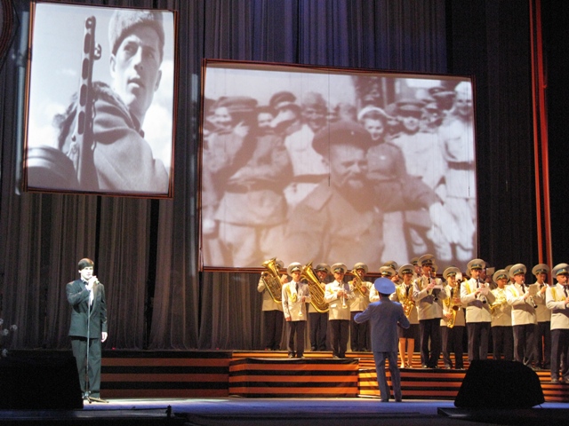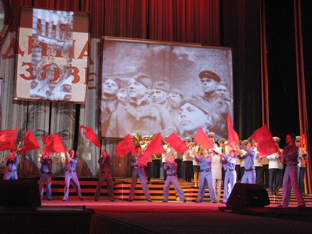 6 мая в ХНАТОБе состоялся праздничный концерт в честь Дня Победы. Он начался с номера, который подготовили ветеранам дети. Они вынесли на сцену большой альбом Победы и попросили взрослых рассказать о войне и 9 мая 1945 года.
