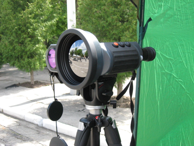 Капитан Владимир Чумаков рассказал о тепловизорах, позволяющих видеть в ночное время, которые используются в работе пограничников с 2008-2009 года. Транспорт с помощью тепловизора можно увидеть на расстоянии семи тысяч метров, а человека - на расстоянии пяти тысяч метров.