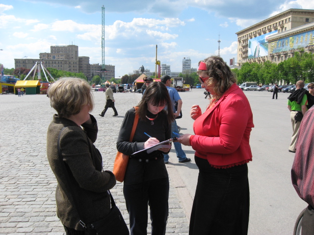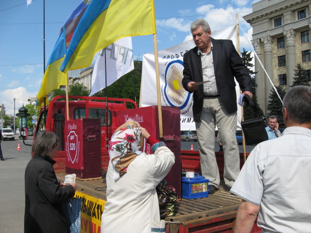 Организаторы акции призывали харьковчан остановить уничтожение экономики и выдвигали лозунги «Мы за повышение пенсии, достойную зарплату педагогам и врачам», «Нет – ухудшению жизни», «Да – народным реформам».