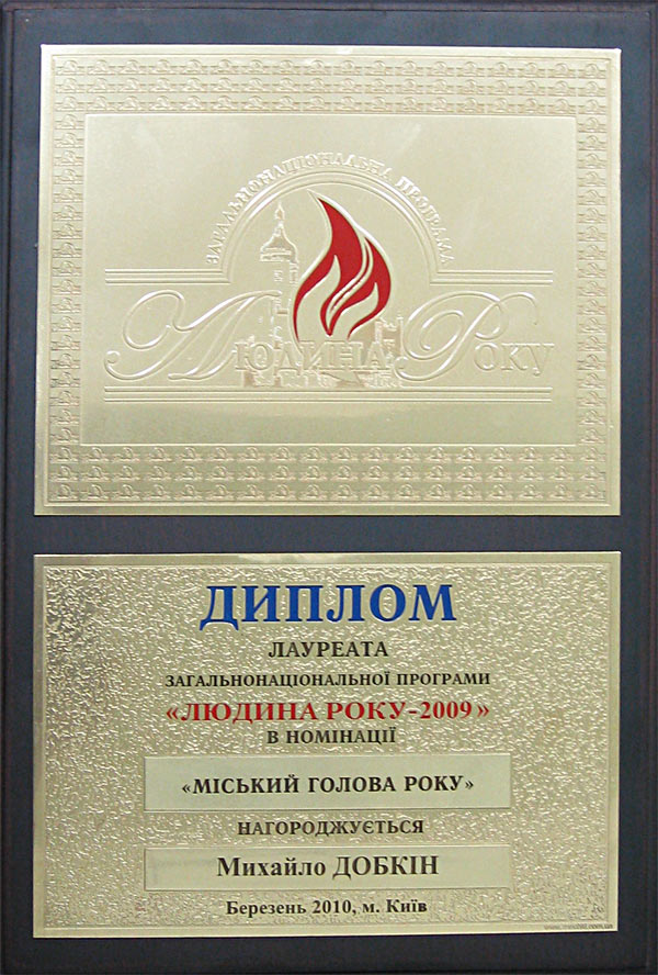 Харьковский городской голова Михаил Добкин получил диплом лауреата 14-й общенациональной программы «Человек года-2009» в номинации «Городской голова года».
