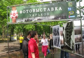 В Саду имени Шевченко на главной аллее открылась выставка «Харьков. Город, переживший войну». Она уже несколько лет показывает харьковчанам, как выглядел Харьков в годы Войны.
