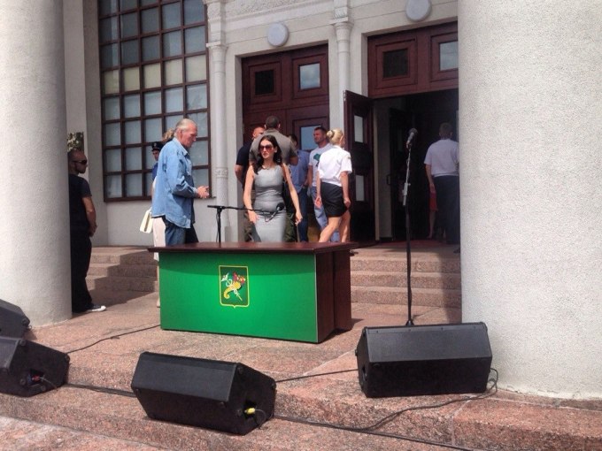 Возле терминала присутствуют чиновники администрации времен Михаила Добкина: Валентин Дулуб, Евгений Савин, Роман Шаповал. Из чиновников из аппарата Игоря Балуты присутствует только Евгений Водовозов.