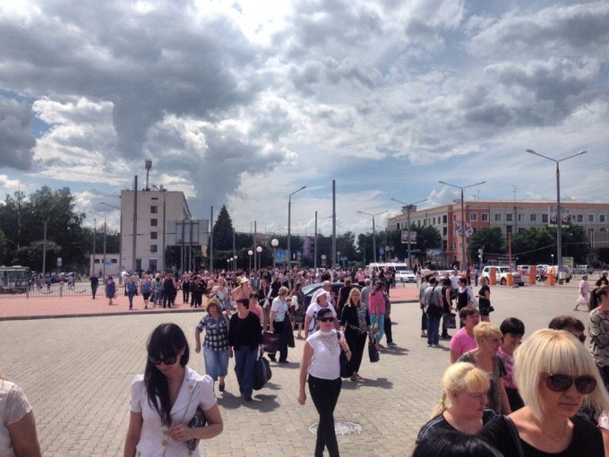14.50. Возле здания аэропорта собралось около семи тысяч человек.