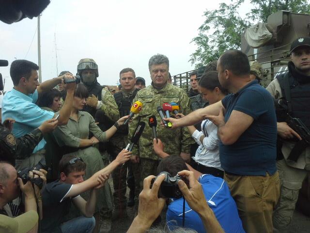 Петр Порошенко также вручил государственные награды и военное снаряжение (тепловизоры, бинокли) бойцам Нацгвардии. Побывал Порошенко и в Донецкой области, в частности, в 15 км от Славянска, в районе Святогорской Лавры.