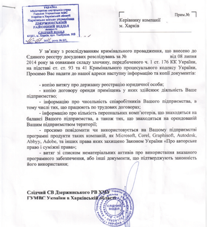В начале этого месяца один из известных харьковских аутсорс-разработчиков получил письмо о том, что компания, как оказалось, фигурирует в уголовном деле, связанном с пиратским ПО. Речь идет о софте Microsoft, Adobe, Corel, Abbyy и других известных вендоров.