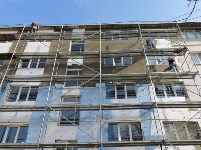 Согласно технологии, вначале пенопластовые плиты клеятся на монтажную пену, потом устанавливается сетка, прокладывается первый слой стяжки, проводится шпаклевка, грунтовка и в завершении – покраска, рассказывает прораб Ярослав Свичкар. «Будет теплее. КПД в районе 65-70%. В принципе, пенопласт по эффективности ничем не уступает более дорогим утеплителям. Мы закрываем все возможные щели, поэтому в будущем продувать не должно. Подтягиваем и откосы, чтобы все было хорошо. Гарантия на работы – до 50 лет», – сказал прораб. По его словам, площадь фасада составляет более 2 тысяч квадратных метров, а стоимость утепления одного квадрата – около 130 гривен.