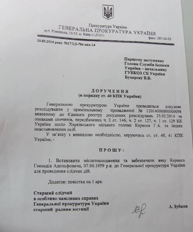 Напомним, Харьковского городского голову Геннадия Кернеса вызвали на допрос в Генеральную прокуратуру Украины 13 марта.