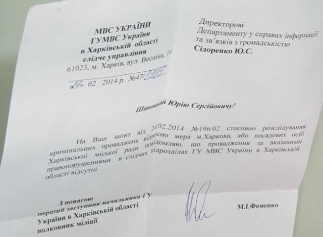 По словам Г. Кернеса, в СБУ заявили, что уголовные производства открыли 25 февраля, хотя на официальные запросы Департаментов горсовета, в правоохранительных органах заявляли, что уголовных производств в отношении Кернеса нет.