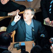 Представитель фракции Компартии в Харьковском облсовете Николай Романов выступает против выделения денег из областного бюджета на строительство стадиона «Металлист».